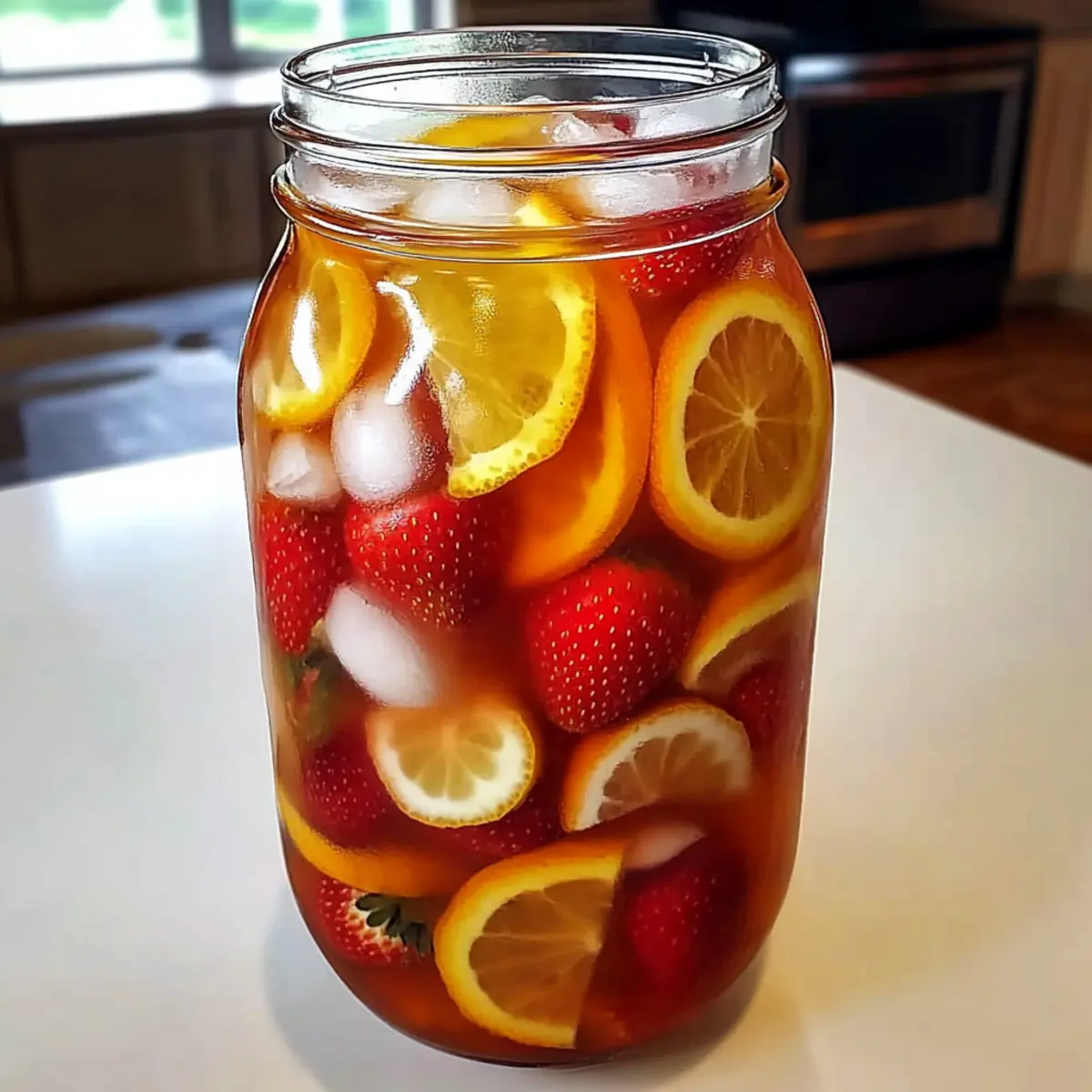 Once the tea has cooled, pour it into a large pitcher and add the sliced strawberries, orange, and lemon. Give it a good stir to mix everything together, ensuring the vibrant flavors of the fresh ingredients infuse into the tea. This step is crucial for creating that refreshing Strawberry Citrus Iced Tea you’ve been looking forward to.