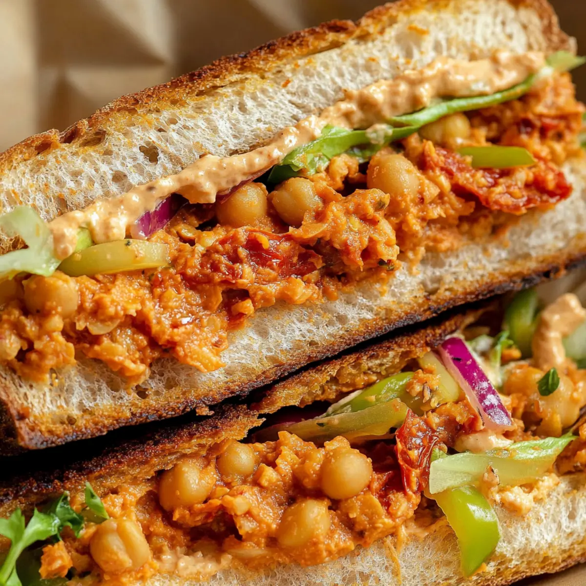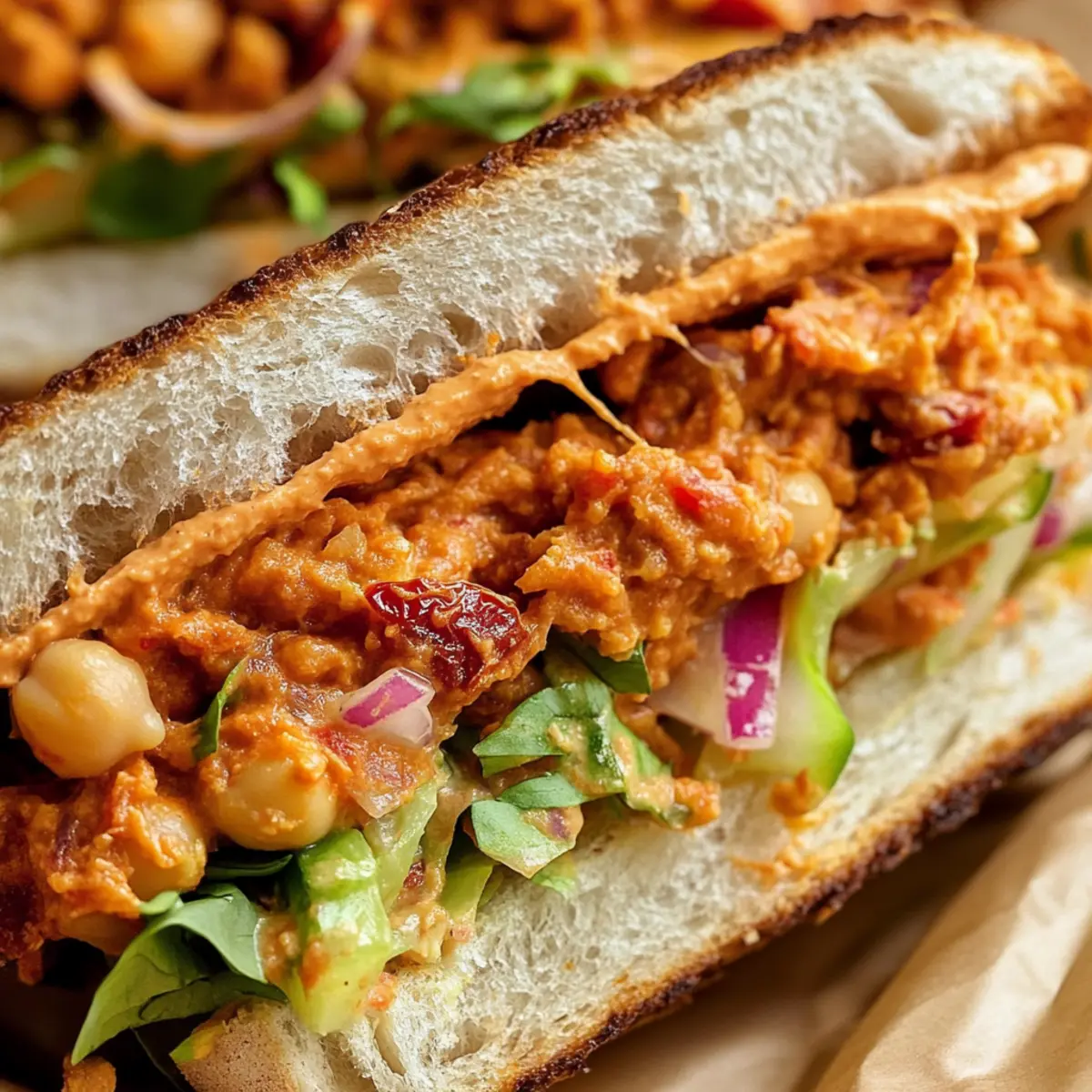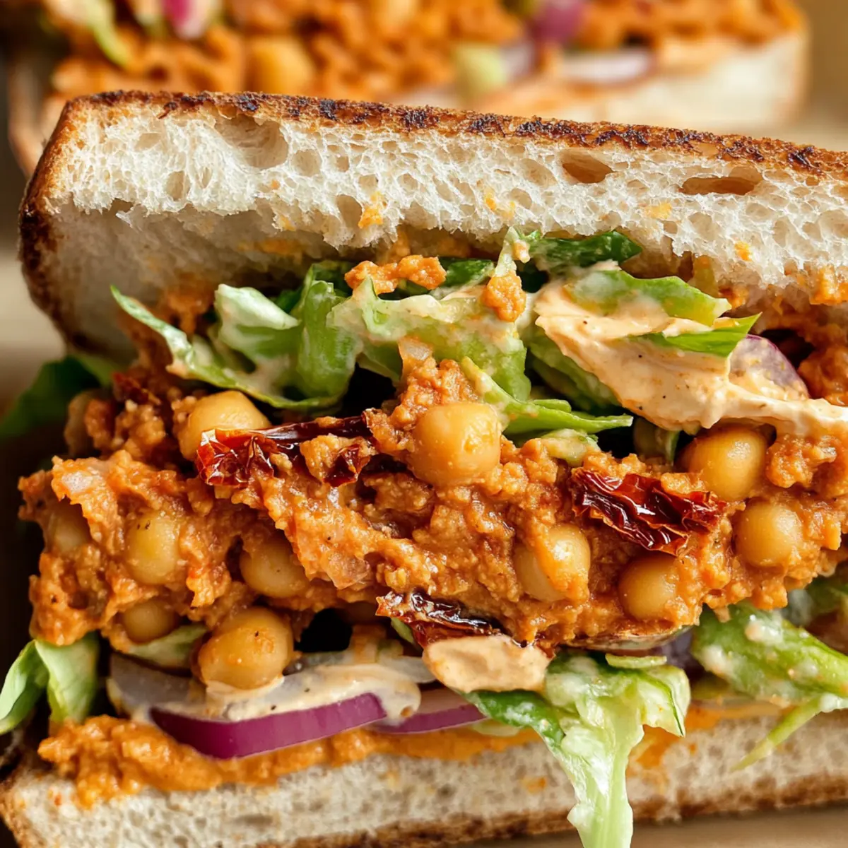 Sun-Dried Tomato Romesco Chickpea Salad Sandwich Bliss