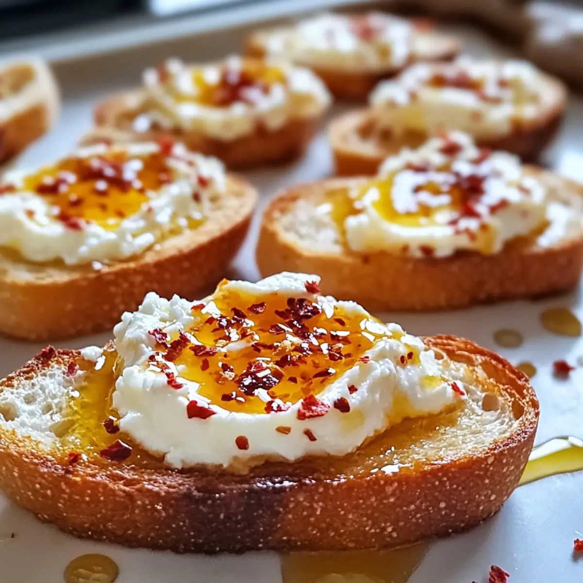 Sweet and Spicy Whipped Feta Crostini with Hot Honey Bliss to Impress