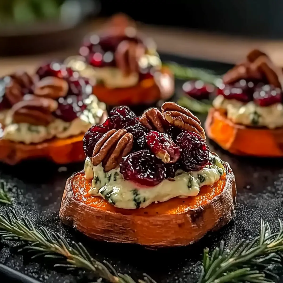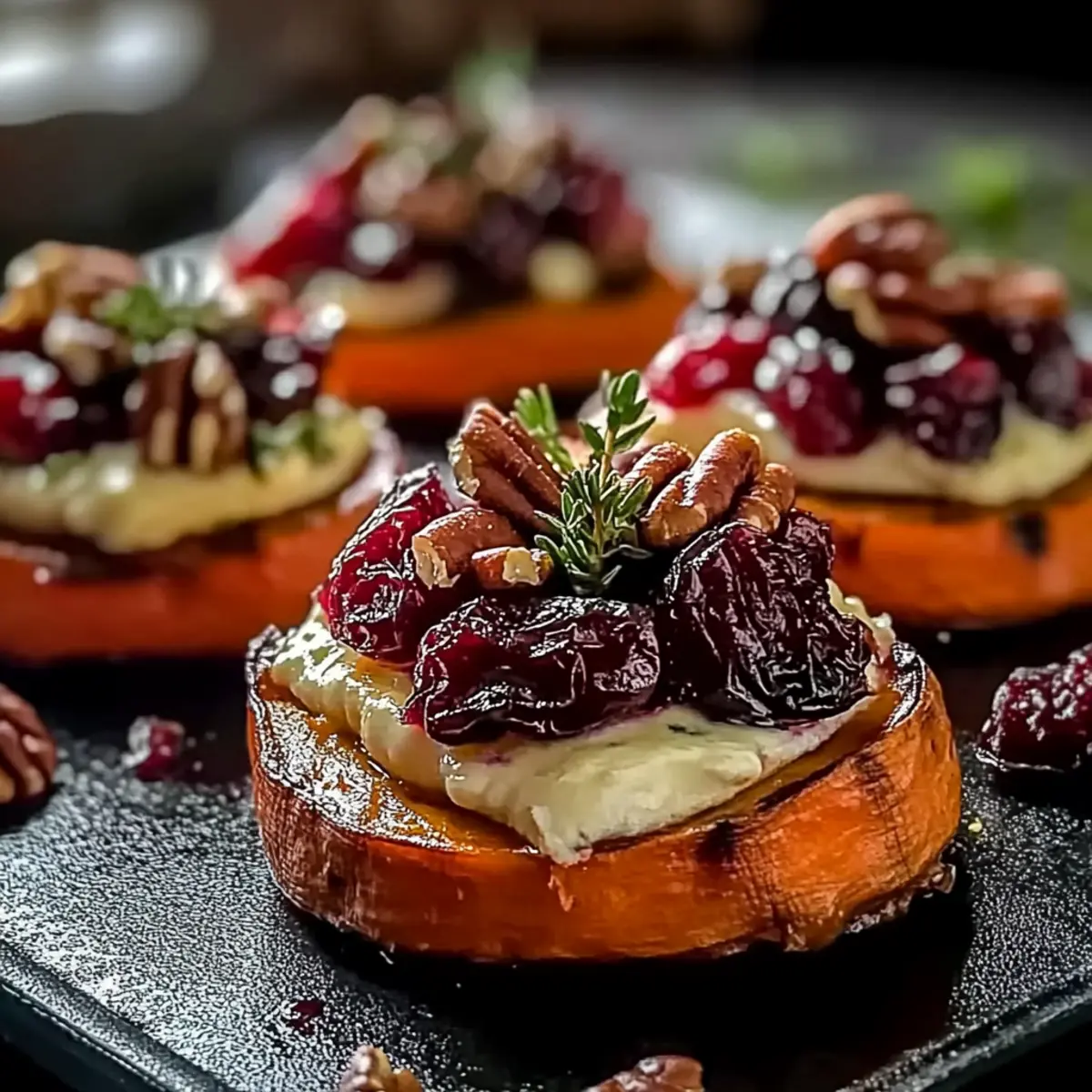 Irresistible Sweet Potato Rounds with Brie and Cranberries