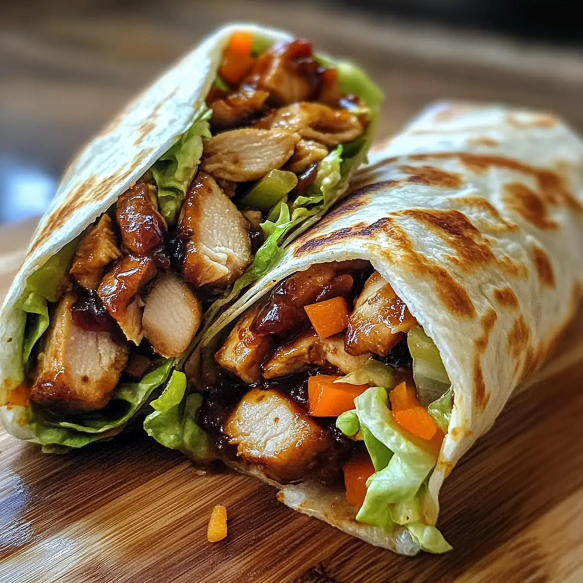 These Quick and Customizable Teriyaki Chicken Wraps are perfect for meal prep enthusiasts looking to save time during busy weeknights! You can marinate the chicken up to 24 hours in advance, allowing those flavors to deeply penetrate the meat. Additionally, chop your fresh vegetables, like lettuce, carrots, and bell peppers, and store them in an airtight container in the refrigerator for up to 3 days. When you’re ready to enjoy your wraps, simply cook the marinated chicken, assemble your wraps with the prepped veggies, and roll them up! This way, you’ll have delicious, restaurant-quality results with minimal effort, making your mealtime stress-free and delightful.