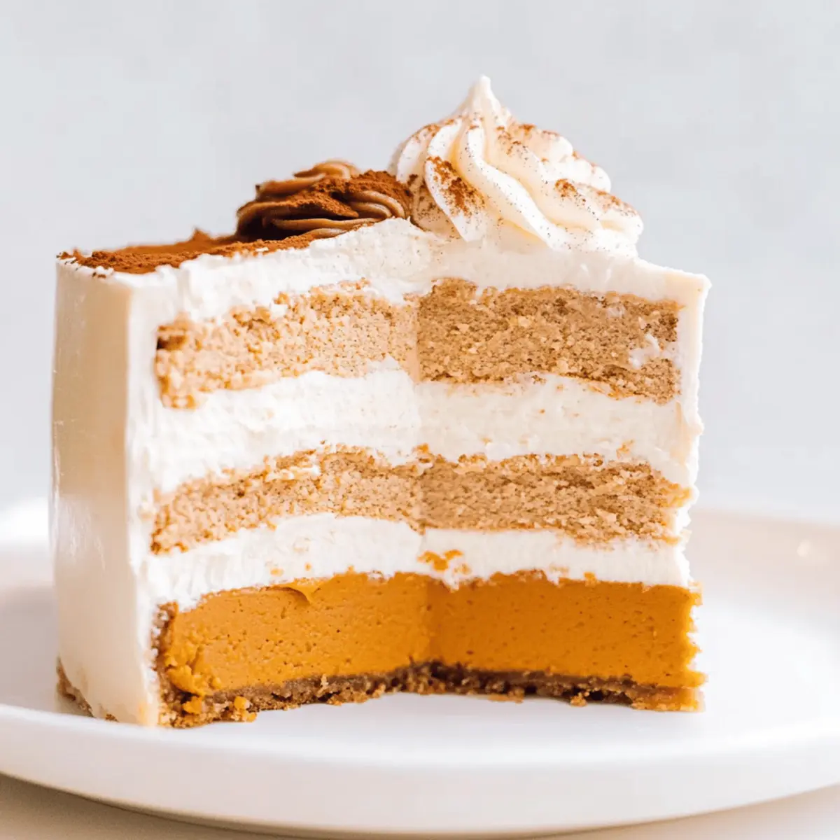Once set and frosted, slice into your stunning Thanksgiving Piecaken and garnish each piece with whipped cream or a sprinkle of cinnamon. Serve chilled or at room temperature to showcase the delightful layers of creamy pumpkin pie, rich cheesecake, and delectable spice cake that will surely impress your guests!