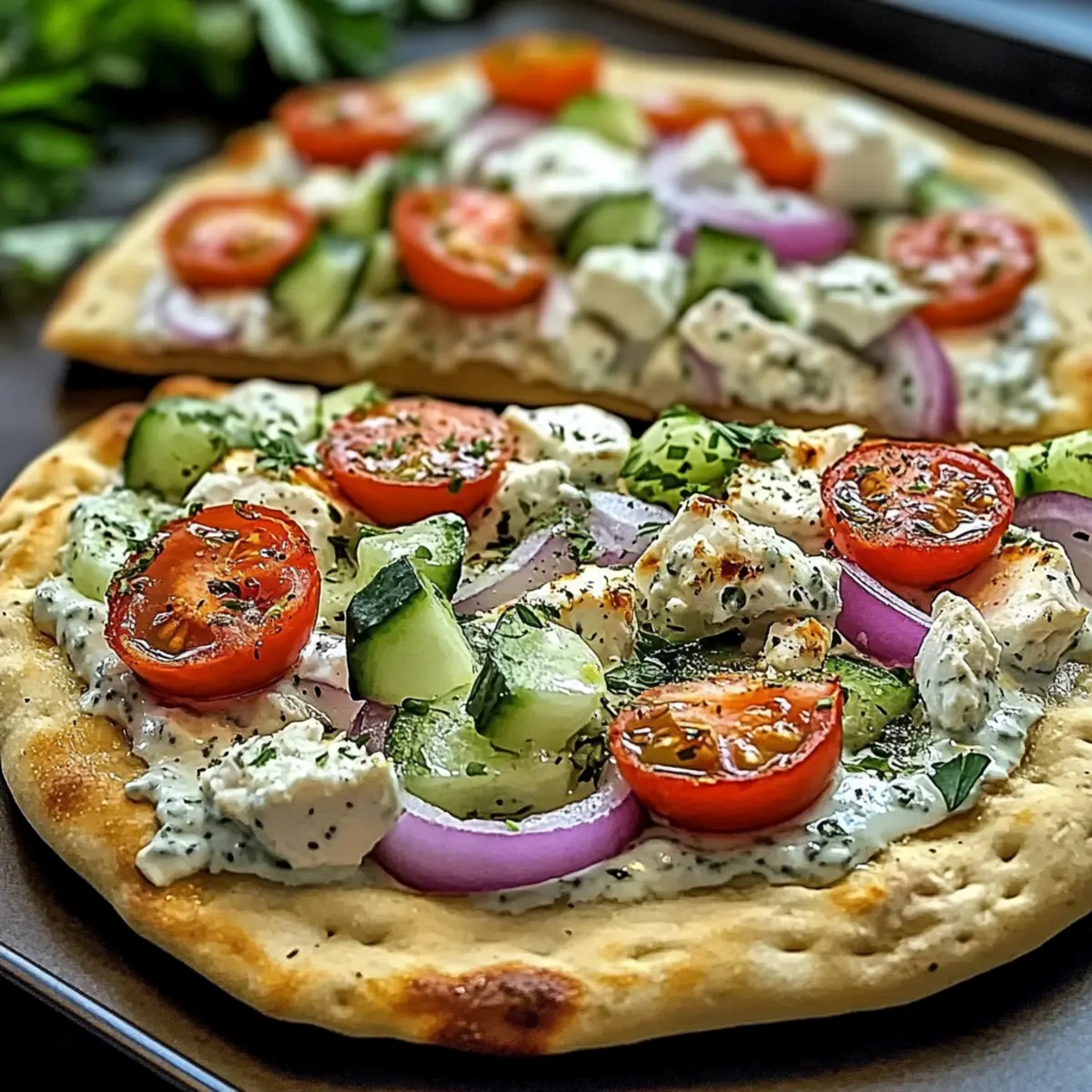Start by preheating your oven to 400°F (200°C) to create the perfect environment for the naan to crisp up deliciously. This high temperature ensures that your Tzatziki Chicken Pizza achieves a golden-brown exterior while keeping the toppings fresh and flavorful.