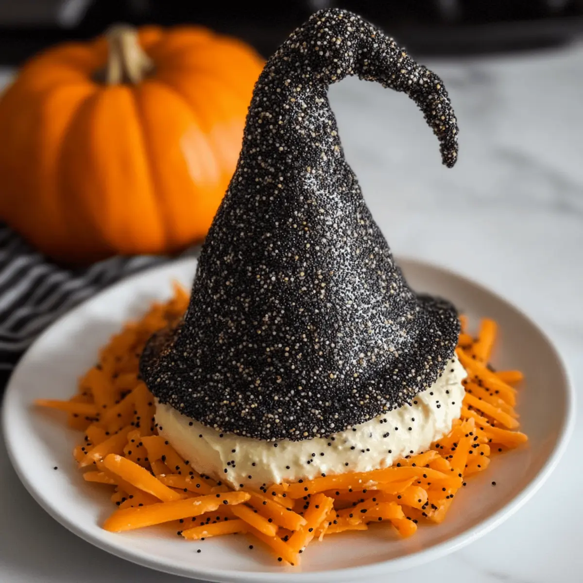 Make-Ahead Tip: Prepare your White Cheddar Witch Hat Halloween Cheese Ball up to 3 days in advance. The chilling time enhances the flavors while saving you stress on party day!
